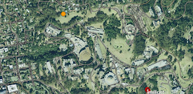 黄色で強調してある場所が、私の居たインターナショナルハウス。赤矢印の方面がローレンス・バークレー国立研究所。