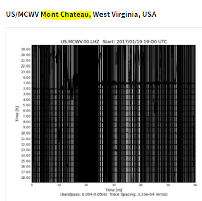 下の地震計グラフは、ウエスト・バージニア州にあるマウント・シャトーのもの。真っ黒だ。それだけ長い間、強い揺れが続いたという事。光の銀河連邦から激しい攻撃を受けた爬虫類人基地という事だ。シャトーとはフランス語で城という意味。つまり城山=爬虫類人基地山。